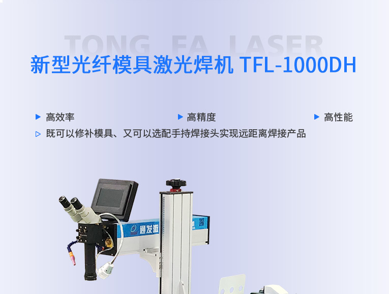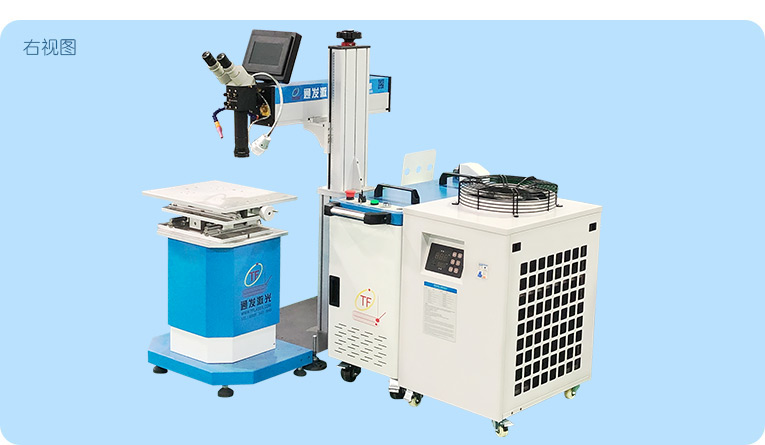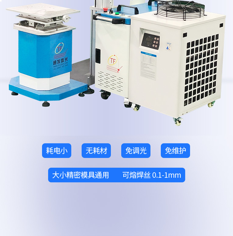 1、采用光纤激光器,反射率高,能量强,免维护,免调光,功耗少,相比传统 模具焊来说,体积小,安全,稳定性好超长使用寿命。